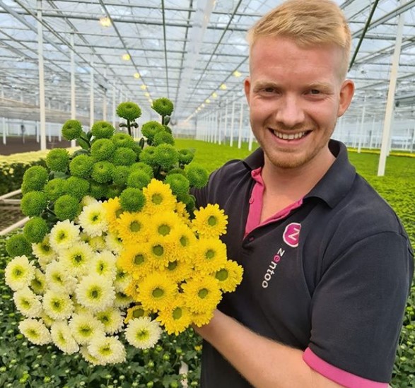 Our buyer Dirk Kromhout buys chrysanthemums every day. See our wide range of fresh chrysanthemums in the chrysanthemums category on the webshop. Dirk buys the chrysanthemums through the auction and directly from growers and suppliers. He buys a lot from supplier Zentoo. Zentoo is the quality brand for unique chrysanthemums. Zentoo offers a wide range of varieties, each designed to guarantee the most beautiful creations. Read about how Zentoo works in our blog.
